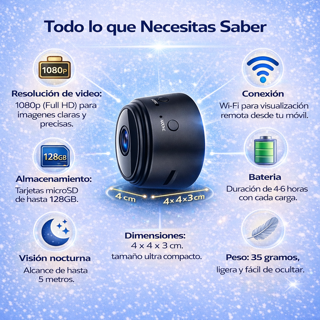 ✨ Vigilancia invisible: Su tamaño compacto permite esconderla en cualquier lugar discretamente.